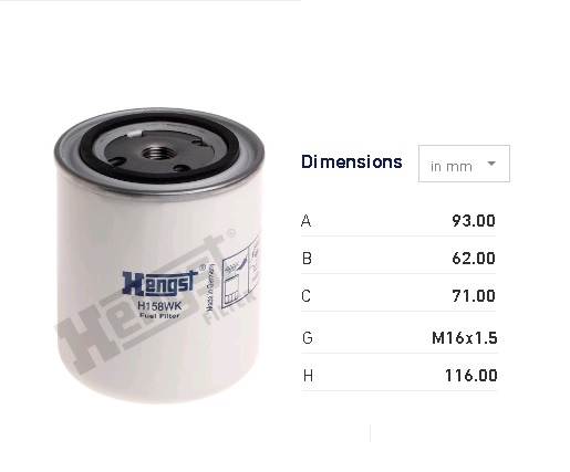 Filtr paliva H158WK VOLVO BL71, PENTA, DEUTZ