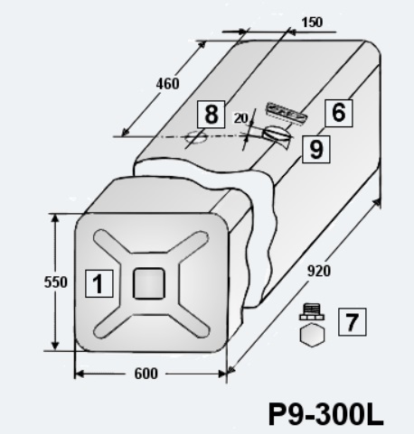 Nádrž paliva 300 l /550x600x920 Fe MAN