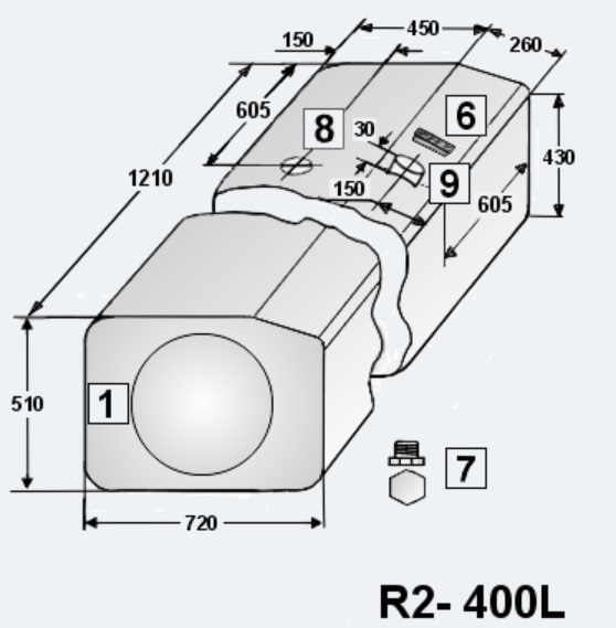 Nádrž paliva 400 l /510x720x1210 Fe RVI