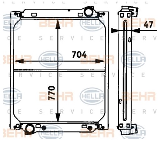 Chladič vody 770x704x47 bez rámu MERCEDES TOURISMO O404