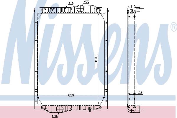 Chladič vody 878x659x58 SETRA, SOLARIS, NEOPLAN