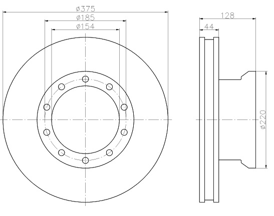 Kotouč brzdový 375x44x128 PN DAF 55FA