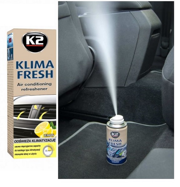 Osvěžovač vzduchu K2 KLIMA FRESH je mimořádně účinný a snadno ovladatelný osvěžovač vzduchu. Odstraňuje nepříjemné pachy, které vznikají v důsledku nečistot a vlhkosti ve ventilačním systému. Celý proces netrvá déle než asi tucet minut. Vhodné pro jakýkoli typ klimatizace. Po použití zanechává svěží vůni.