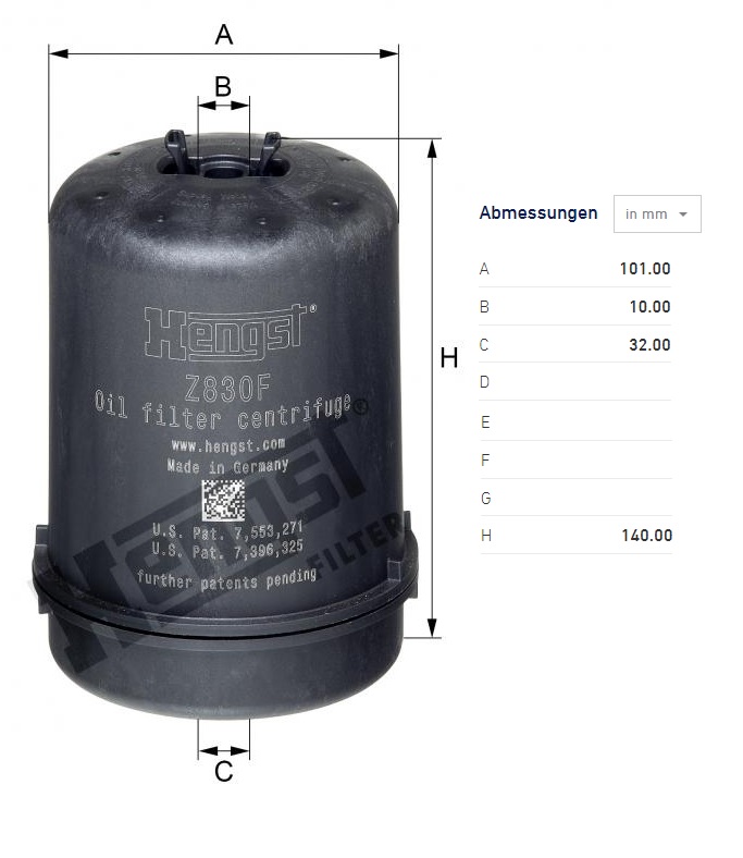 Filtr oleje odstředivky SOLARIS Urbino, TEMSA, VAN HOOL, DAF XF od 10.2012, CF od 05.2013