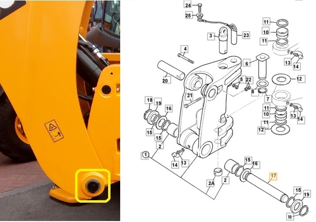 Čep zadního ramene 60x447mm JCB 3CX, 4CX