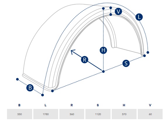 Blatník zadní kulatý - dvoumontáž 550x1780x1120/570 bez bílého pásku