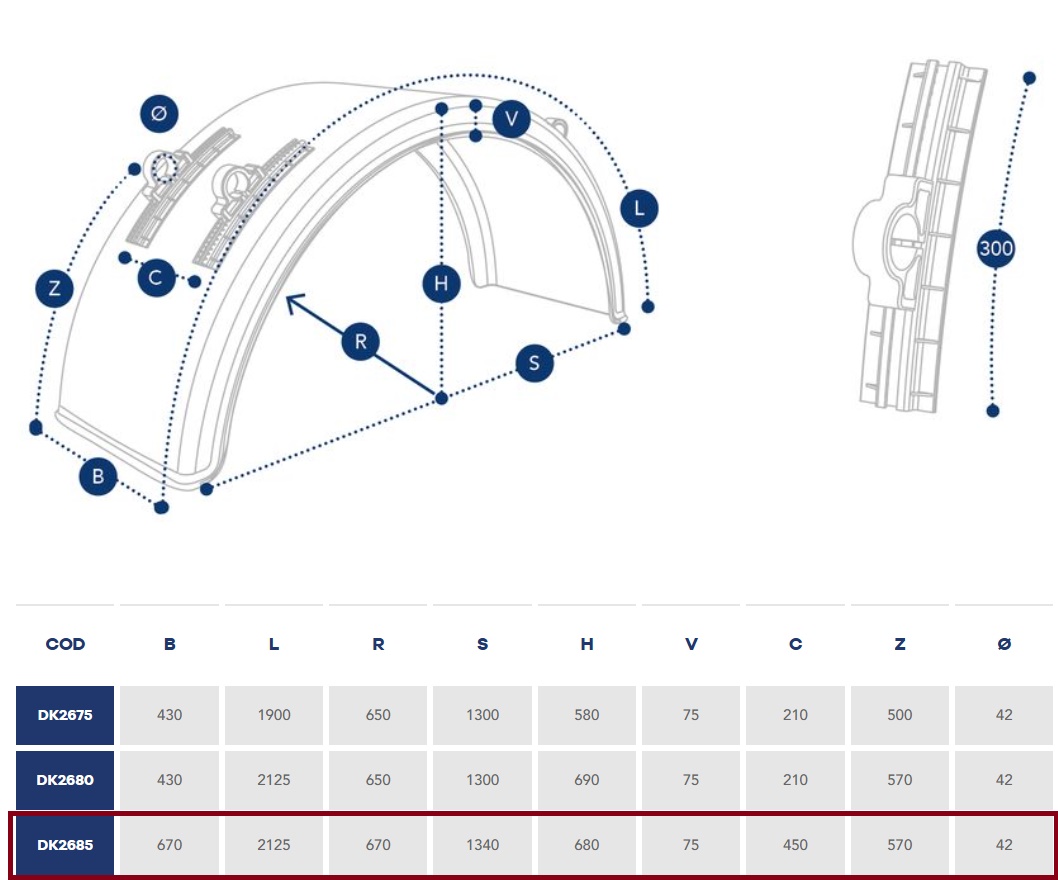 Blatník zadní kulatý - dvoumontáž 670x2125x1340/680 s nastavitelnými držáky, s páskem