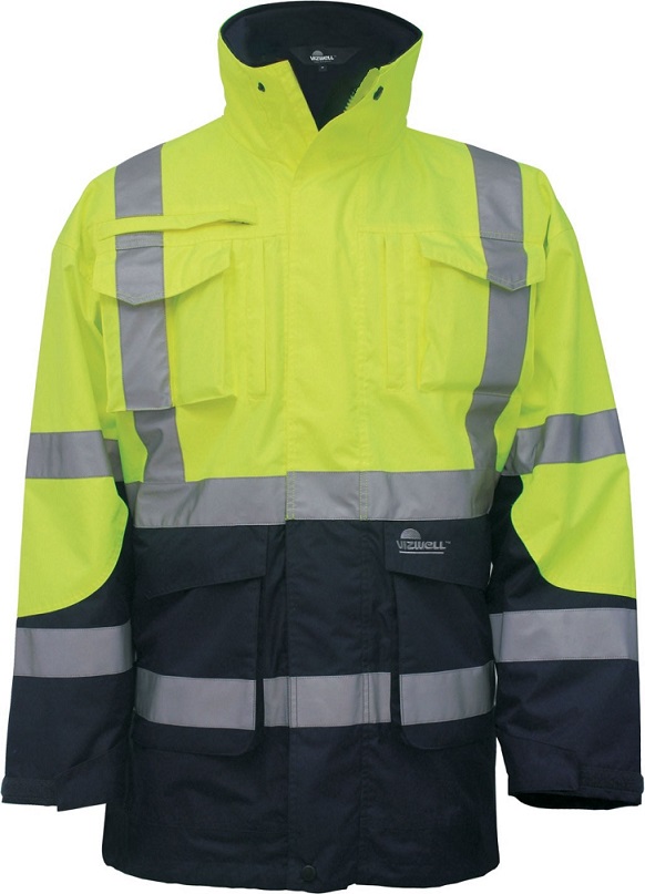 Bunda pracovní reflexní RISPSTOP dlouhá, skrytá kapuce, žluto-modrá XXL