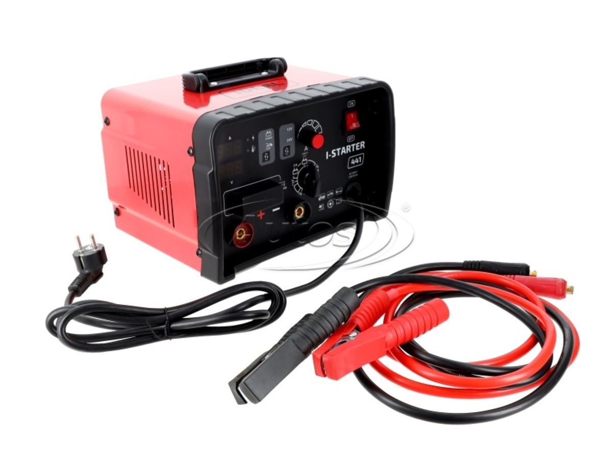 I-STARTER 441 je invertorový usměrňovač pro nabíjení 12 a 24 voltových kyselinových baterií, který má funkci startování automobilů s benzínovými a dieselovými motory.