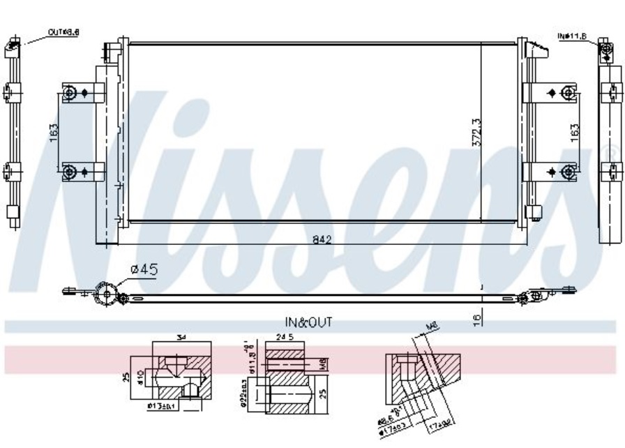 Chladič klimatizace 842x372x16 MERCEDES Actros MP4/MP5 od 2011, Antos 2012, Arocs od 2013