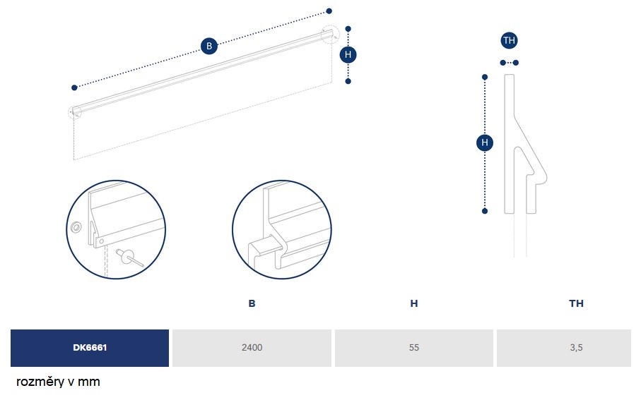 Držák sdružené zástěrky zadního nárazníku 2400x55x3,5 /k držáku DK6660/