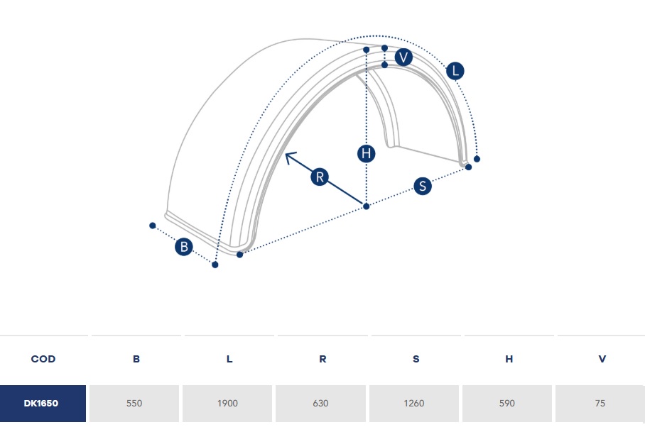 Blatník zadní kulatý - jedno/dvoumontáž 550x1900x1260/590 s bílým páskem