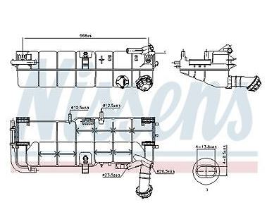 Nádrž expanzní 743x321x108 se snímačem MERCEDES Atego, Axor, Axor 2 OM457.910-OM926.990