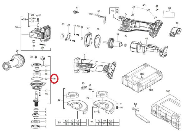 Sada opravárenská AKU brusky MILWAUKEE M18