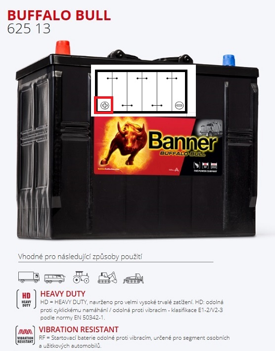 Autobaterie BANNER 125Ah/760A Buffalo Bull /345x172x283/ MANITOU,CAT RG-6,KOMATSU Valtra V