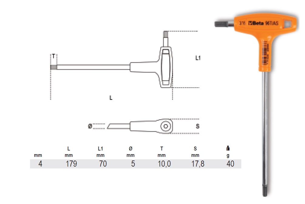 Klíč šestihranný lomený s rukojetí FI-4mm 96TINOX BETA